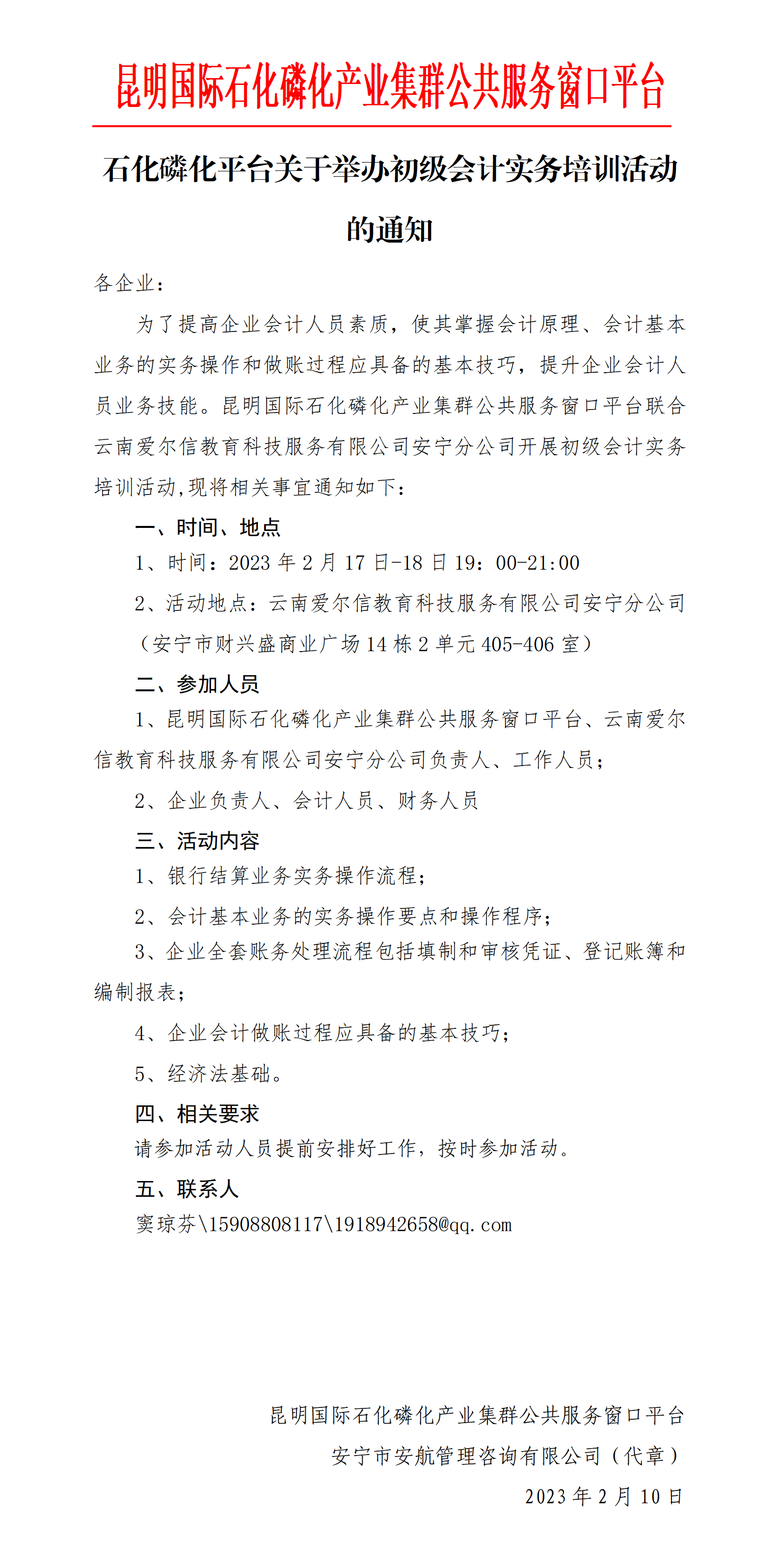 石化磷化平臺(tái)關(guān)于舉辦初級(jí)會(huì)計(jì)實(shí)務(wù)培訓(xùn)活動(dòng) 的通知