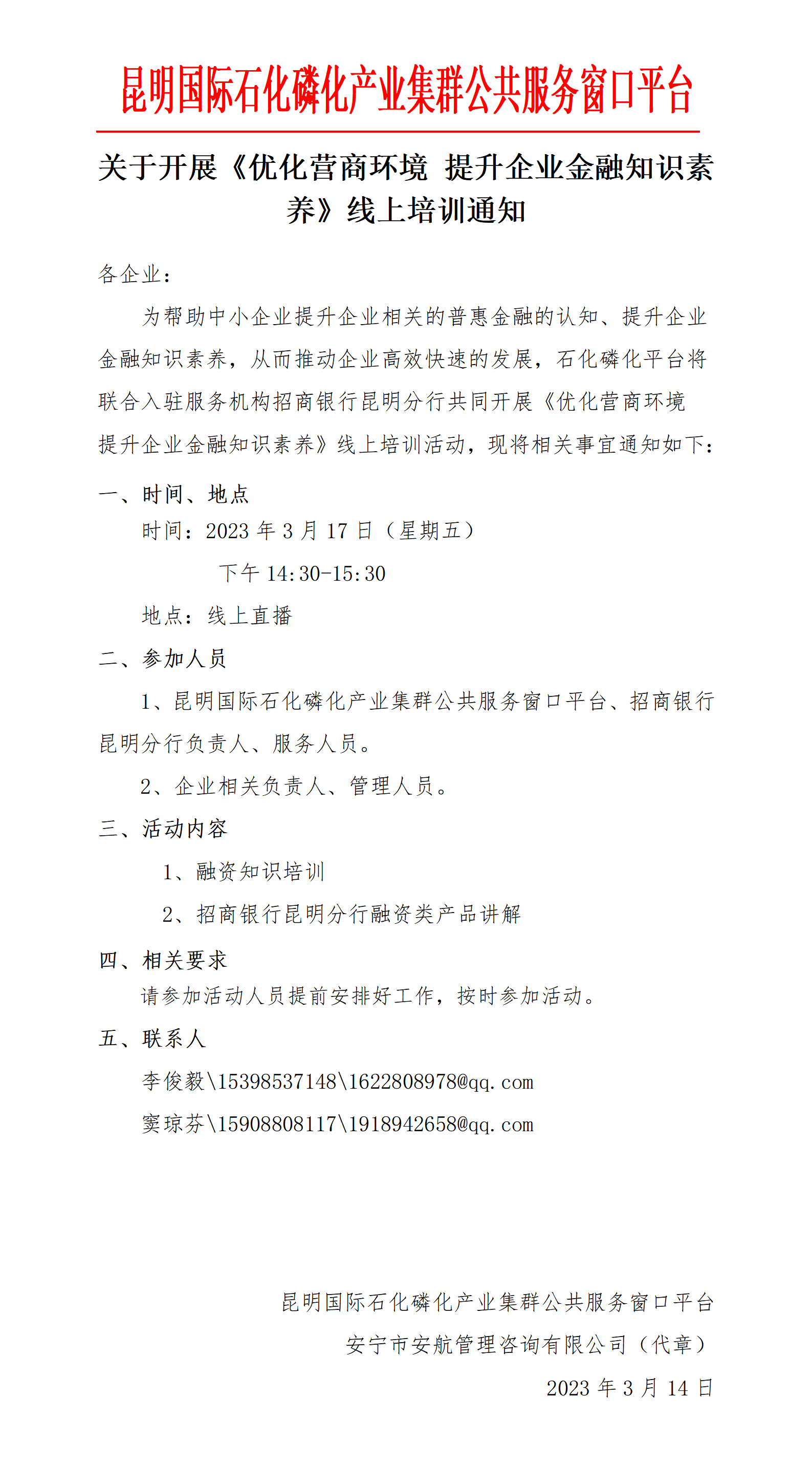 關(guān)于開展《優(yōu)化營商環(huán)境 提升企業(yè)金融知識素養(yǎng)》線上培訓(xùn)通知