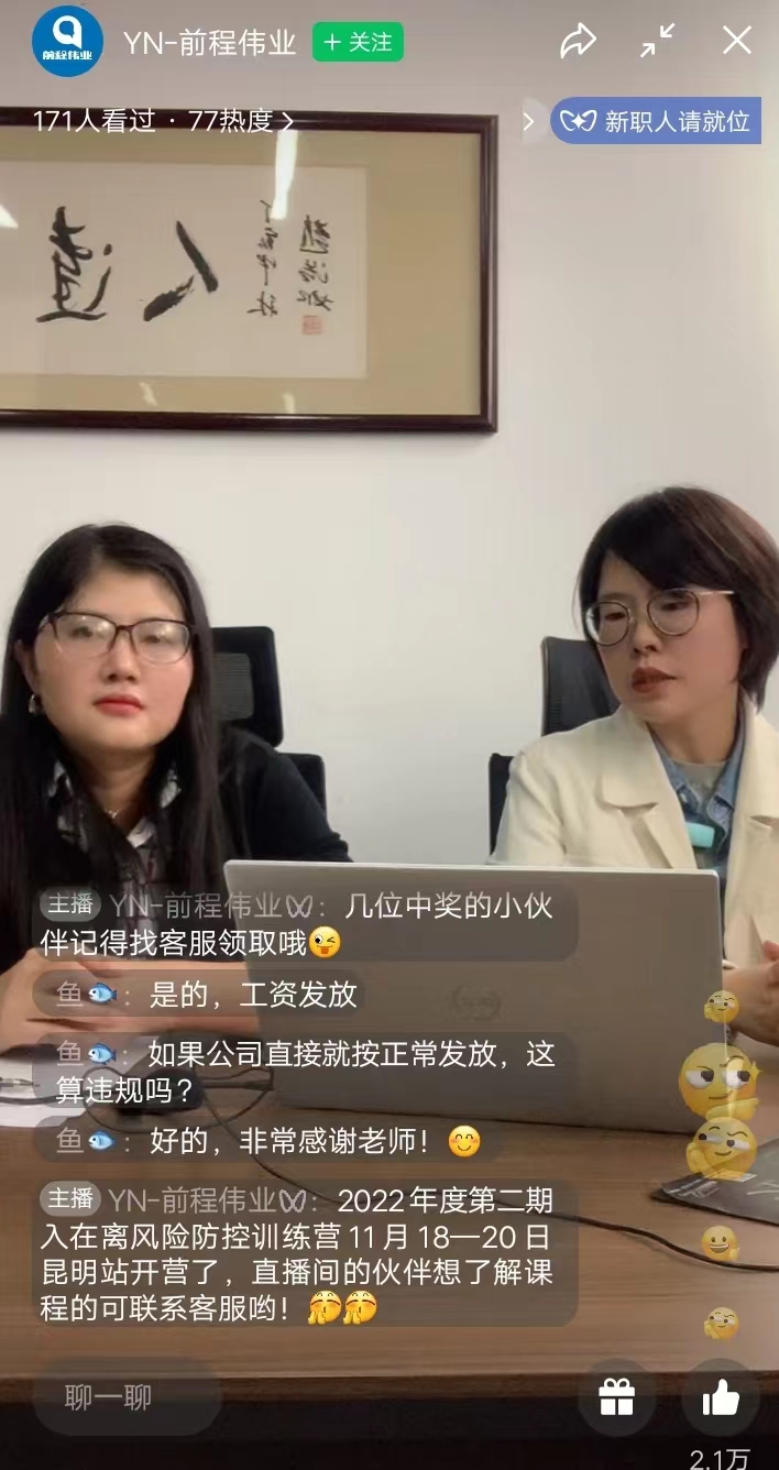 隨著新型冠狀病毒感染的肺炎疫情的不斷蔓延和發(fā)展,在全國范圍內打響了一場“疫情防控總體戰(zhàn)、阻擊戰(zhàn)”。在疫情防控期間,廣大群眾關心的可不僅僅是疫情防控工作,同時也十分關注自己在疫情防控期間的勞動報酬能否如數(shù)如期發(fā)放,自己的基本居住生活開銷能否得到保障,為幫助企業(yè)及廣大職工正確理解法律,維護自己合法權益,把握自主權,妥善處理好疫情防控期間勞動關系問題,維護職工合法權益,保障用人單位正常生產經營秩序。云南前程偉業(yè)人力資源管理有限公司袁鑫、王鳳仙老師以在疫情大環(huán)境影響下“疫情期間工資如何支付”為主題,圍繞靜態(tài)管理期間企業(yè)安排勞動者居家辦公的,工資如何支付?。靜態(tài)管理期間員工不能到公司上班,勞動報酬如何支付;因疫情影響導致勞動者被隔離治療期間或醫(yī)學觀察期間的工資發(fā)放;被隔離在公司正常工作時間外,是否算加班等問題及企業(yè)如何妥善處理好疫情防控期間勞動關系問題,保障用人單位正常生產經營秩序,維護自己合法權益為大家進行詳細講解,通過現(xiàn)場提問的互動形式,就大家最關心的勞動報酬發(fā)放標準問題和參加學習人員進行分享交流,加深學習人員對疫情防控期間勞動關系方面的法規(guī)、政策理解、認知。本次宣講活動吸引了200多人參加。