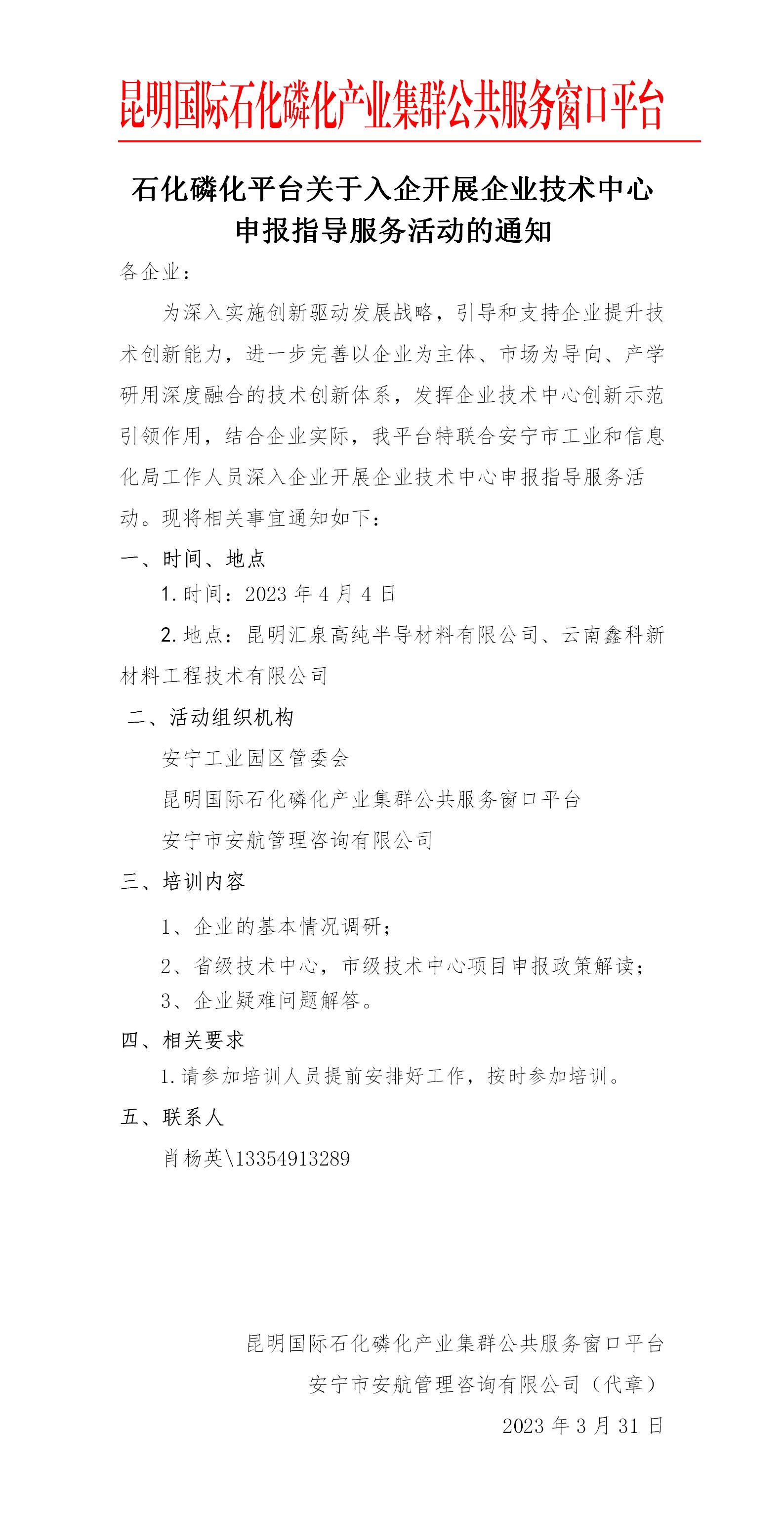 石化磷化平臺關(guān)于入企開展企業(yè)技術(shù)中心申報指導服務(wù)活動的通知