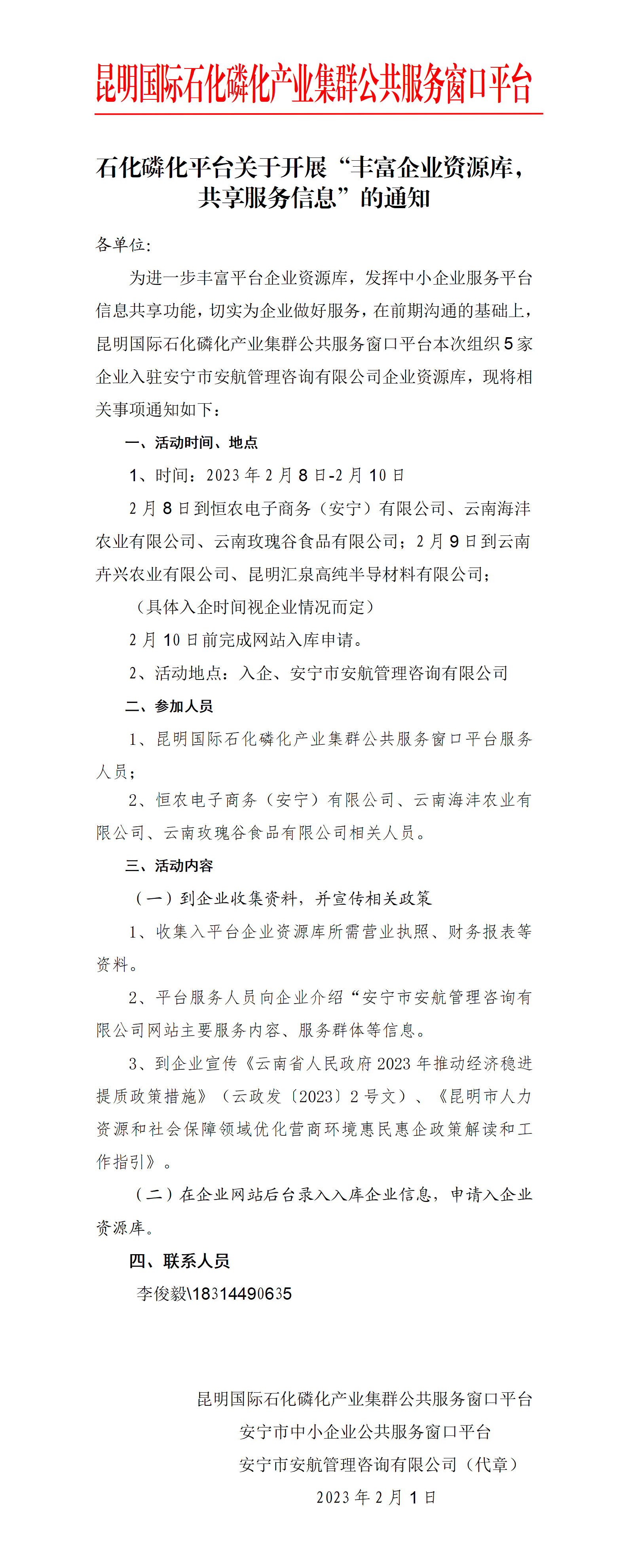 石化磷化平臺(tái)關(guān)于開(kāi)展“豐富企業(yè)資源庫(kù),共享服務(wù)信息”的通知