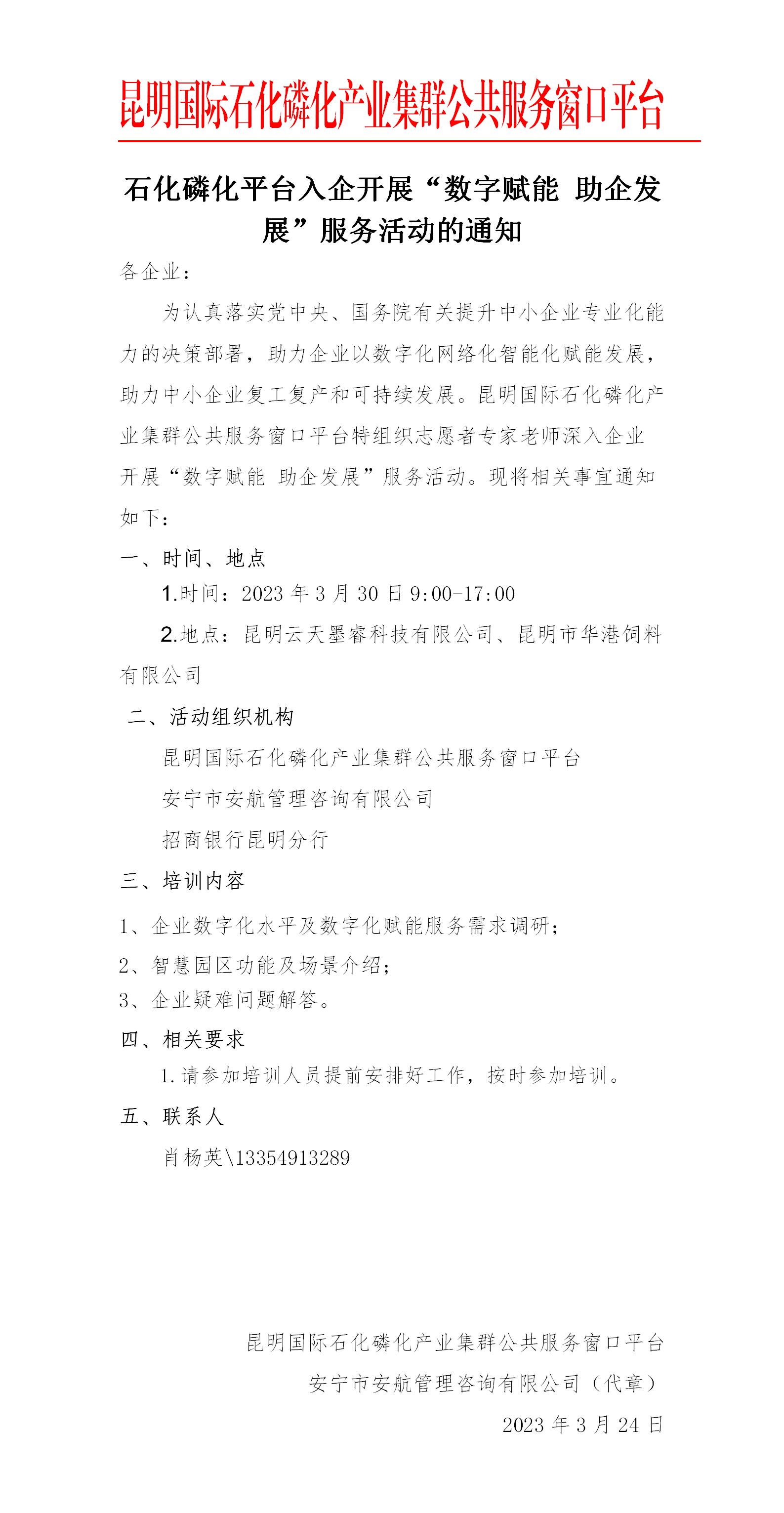 關(guān)于開展“數(shù)字賦能 助企發(fā)展”服務(wù)活動的通知